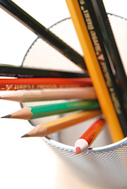 My favorite えんぴつ。いつも持ち歩いている。以前はどこの事務所にもあったえんぴつ削りが姿を消していることが多いので、困ることがあるそうだ