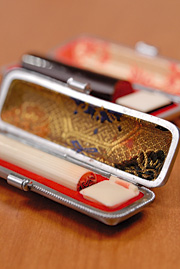 My favorite中学校の卒業記念でもらった判子(手前)。実印として大切に使っている。どうみても写真奥の立派な認印のほうが実印に見えるのだが…