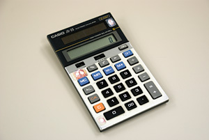 My favorite 15年以上も愛用しているカシオ計算機製の電卓。型番は「JS-25」。当時、「メモリが大きい」ことが気に入って約6000円で購入した。会社内の会議には必ず持参し、事業計画を練っている