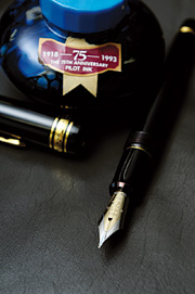 My favorite PILOT製の万年筆。15年ほど前に昇進した際、パイロット勤務の兄からプレゼントされたそうだ。当時パイロットが創業75周年を迎えたため、それを記念する文字が刻まれている。今も決裁などのサインに愛用中。万年筆をプレゼントするのは、「出世して欲しい」という願いの表現。まさにその通りになったわけだ