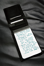 My favorite 万年筆も時計もたくさん持っているが、メモ帳はこれ一筋。同じタイプの予備も持っている。メモ帳2冊と中身のノートも合わせて10ドルしなかった。スピーチの時も、ビル・クリントン元大統領との面会でも活躍した、どんなものにも勝る「ブレーン」だ