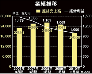 中堅・独立系SIerのコア。昨年度(2009年3月期)の連結売上高は前年度比4.5%減の250億円、営業利益は同6.4%減の11億円と、世界同時不況の影響をもろに受けた。今年度(10年3月期)の連結売上高は同20.1%減の200億円、営業利益は同9.3%減の10億円の厳しい見通しを示す。強みの組み込みソフト事業の今期売上高は前年度比28.0%減、同事業の営業利益は34.1%減の見込み。経営体制を刷新し、全社総力を挙げて改革に臨む。