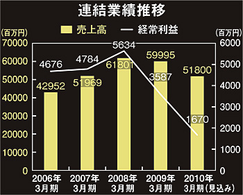 DTSの今年2月時点の業績予測をみると、2010年3月期の連結売上高は前年度比13.7%減の518億円、営業利益は同56.9%減の15億円。2期連続の減収減益となり、厳しい業績だった模様。ただし、需要拡大が期待できる金融系システムに強いことなどから、業績は昨年度で底を打ったと同社ではみている。今期(11年3月期)からのV字回復を目指す。