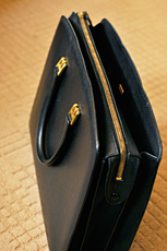 ・こだわりの鞄 スイスのBALLY(バリー)は、今から10年ほど前、ニューヨークで購入した。「一泊程度の出張にちょうどいい大きさ」と、岡本晋社長とともに、あちこち旅行してきた。「ある日、取っ手がとれてしまったが、日本でも快く修理に応じてくれて助かった」と、お気に入りの様子。