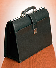 ・こだわりの鞄 川崎秀一社長は、何度も買い替えをしているが、このBURBERRYのダレスバックを愛用している。上部が大きく開口し、構造上、床に置いても安定していて収容力が大きい。「遠方への日帰りや1泊程度の出張時に書類や着替えなどを入れるのに使い勝手のいい鞄」とお気に入りの理由を語る。
