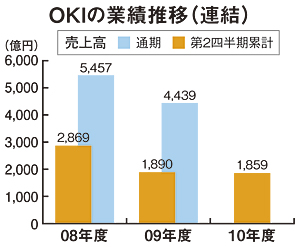 1881年、日本最初の通信機器メーカーとして沖牙太郎氏が創業(創業当時は「明工舎」)。1889年に沖電機工業に改称。1896年には国産初の直列複式交換機を日本電信電話公社に納品。現在の「沖電気工業」は1912年に設立。51年に東京証券取引所に上場。製品としては、82年に世界初の紙幣環流機能付きATMを、90年にLED(発光ダイオード)を光源に用いたページプリンタを発売。10年3月期の業績は、売上高4439億円、営業利益139億円。
