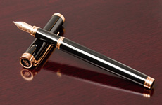 ・お気に入りのビジネスツール 榎本秀貴社長が、契約書などの書類にサインをするときに愛用しているのが、ウォーターマンの万年筆だ。役員になったときに手に入れた。特別な思いは込めていないというが、使い勝手が抜群で、「気づいてみれば、もう6、7年使っている」と語る。