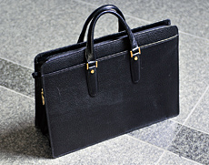 ・こだわりの鞄市販のメーカー製品ではなく、職人が仕立てたハンドメイドの鞄。「機能性にこだわりがある」(轟宏一社長)と、営業職に長く就いていたこともあり、用途に応じた使い勝手を追求した逸品という。かなり年季の入った鞄だが、1泊2日程度の出張ならばこれ一つで十分足りるそうだ。