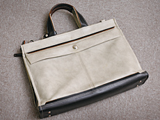 ・こだわりの鞄 関根俊一会長(前社長)と、新宿の伊勢丹に一緒に買いに行った鞄。2年前から使っている。「社長になる時、関根さんから『今使っている鞄ではダメだ』といわれて買った」。一緒に買いに行ったものの、「プレゼントではなく、自腹だった(笑)」とか。