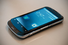 ・お気に入りのビジネスツール 台湾メーカーのギガバイト社が展開する「GSmart」ブランドのスマートフォン。二つの電話番号を設定することができるので、台湾と中国大陸のどちらでも簡単に使えて便利。中国をはじめ、海外出張が多い劉理事長にとって、なくてはならないアイテムだ。