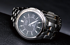 ・お気に入りのビジネスツール シチズンのエコ・ドライブ式腕時計。以前はセイコーの機械式腕時計を愛用していたが、「大きな手柄を立てた部下に譲った」(丁偉儒董事長)とのことで、今の時計に変わった。電波時計で「杭州あたりだと、たまに日本の電波を拾って日本時間になる」ことも。