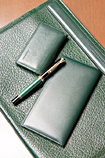 ・お気に入りのビジネスツール 「グリーンITではないが、昔から癒やし効果があるとされる緑色が好みだった」という嶋本正社長は、緑色のビジネスツールを愛用している。「手帳や名刺入れなどで緑色のものがあると、つい買ってしまう」と、癒やし(I)のツール(T)である緑=ITが好きなのだとか。