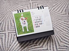 ・お気に入りのビジネスツール お嬢さんからプレゼントされたという手づくりのカレンダー。このコーナーで、カレンダーが登場したのは初めてだ。「動物が大好きで、2匹のジャック・ラッセル・テリアがモデルとなってプリントされている。このカレンダーを眺めていると、とても癒される」と目を細める。