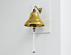 ・お気に入りのビジネスツール 社長室の壁にかけているベル。一見するとビジネスツールには思えないが、吉田社長はこのベルを使って、社員の士気を高めているそうだ。「社員が受注するたびにベルを鳴らして、次の受注に向けて頑張るスピリットを培う」と、闘志を高めるためのツールとしての活用法を説明してくれた。