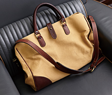 ・こだわりの鞄 英国ロンドンで購入した「エッティンガー」の鞄。「チャールズ皇太子御用達で、歴史のあるメーカー。事前にネットで調べて、現地で店を探して手に入れた」とか。しかし、想像していたのとは違ったらしい。「まず、汚れが目立つ。しかも重い」と、やや期待が外れた様子で苦笑いする。