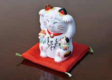 ・FAVORITE TOOL 招き猫の置き物。グループ会社の社長から贈呈されたもので、社長に就任したとき、「商売が繁盛するように」と、恵比寿にある招き猫の専門店で購入して、わざわざ届けに来てくれたのだとか。小松社長は、この置き物をいつも机の上に置いて、「社員と商売に福が訪れることを願っている」そうだ。