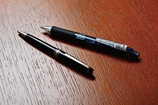 ‘事務機系の販売店は、これまでお客様側から自発的に声をかけられるということはまずなかったので、新鮮な驚きがあるようです。スマートチャージに対して、新しい顧客を獲得するためのツールとして大いに期待してもらっていると感じます。’<“KEY PERSON”の愛用品>常時持ち歩く2本の筆記具 入社以来、モンブランのボールペンを使い続けている。「書き心地が非常にいい」そうで、現在のは二代目。4色ボールペンとシャープペンシルを合わせた多機能ペンとこのボールペンを常に持ち歩いている。