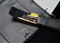 ‘SIerの強みというのは、ユーザーに密着し、ユーザーの業務を知り尽くしていること。’<“KEY PERSON”の愛用品>文具好きなのはお見通し 顧客から贈られた文具が前西規夫氏のお気に入りだ。もともと文具にはこだわるほうで、何十回、何百回と客先に出向くうちに、「文具好きなのを気づいてもらえ、役員昇進のときに私の名前入りで贈ってくれた」と、うれしそうに話す。