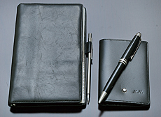 ‘システムの活用によって、どれだけ顧客が儲けられるか──この部分にこそSIerの価値がある’<“KEY PERSON”の愛用品>システム手帳は持ち歩き重視で 文庫本サイズの小さなシステム手帳がお気に入りだ。「愛用のボールペンと名刺入れのセットで、かれこれ10年ほど使っている」。小型にしたのは持ち歩きを重視しているためで、客先で聞いたキーワードは、いつもメモに残している。