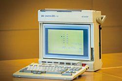 <“KEY PERSON”の愛用品>今も動くワープロ専用機「OASYS」 自宅の納戸に眠っていた富士通のワープロ専用機「OASYS 30AFIII」。1988年頃に購入したものだが、保存状態がよく、今でも電源が入る。モデム内蔵のため、パソコン通信にも利用していたとのこと。後世に伝えたい昔の愛用品である。