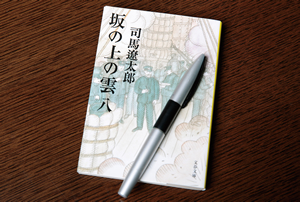 <“KEY PERSON”の愛用品>成功のカギは人材育成にあり 「企業の成長は人材育成なしに成し得ない」と話す杉山社長の“座右の書”が『坂の上の雲』(司馬遼太郎著)。明治維新の成功のカギを握ったのが人材育成であり、同書にも詳しく書かれている。お気に入りの水性ボールペンも添えてもらった。