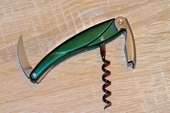 <“KEY PERSON”の愛用品>ソムリエナイフも緑! 2007年、マザーズに上場時に、リードインベスターが上場益で新橋にワインバーを開いてくれたことがきっかけとなり、自身もワインを嗜むように。コーポレートカラーのグリーンのソムリエナイフを一か月かけて探し、愛用している。