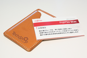 <“KEY PERSON”の愛用品>常に富士通の理念とともに 米TechShopと富士通が協業し、2016年4月、TechShopのアジア第一号店を東京にオープンした。その開所祝いで配られた革製のカードケースを愛用しており、富士通の理念・指針が書かれたカードも常に携帯している。