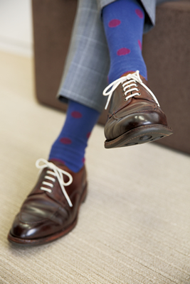 米国の「オールデン」ブランドの靴がお気に入り。大事な商談や出張のときは、「だいたいオールデンを履く」とのこと。夏の時期、靴ひもは清涼感をイメージする白色。季節に合わせて変えるなど、おしゃれにも気遣いしている。