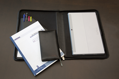 お気に入りの文房具セット。こだわりはB5版のノートに手書きメモをとること。顧客との会話や社内の会議、ふと思いついたアイデアなどが、小さな文字でびっしりと書き込んである。「手を動かすことで頭の整理にも役立って一石二鳥」と話す。