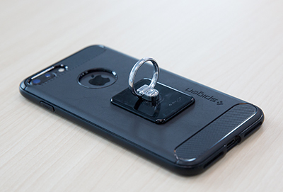大切なスマートフォンの落下防止アイテムとしてホールドリングがある。「スマートフォンはオフィスの“入り口”。最大限に活用して、どこでもオフィスを実現するために、(リングは)なくては欠かせないアイテム」とのこと。