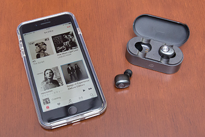 ワイヤレスイヤホンを昨年から愛用。「コードが嫌だった」のだそうだ。「すごく重宝していて、最新のオルタナティブロックやジャズ、クラシックなど、そのときの気分に合った音楽を聴いてリフレッシュを図っている」という。