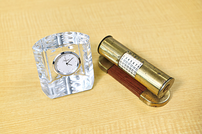 オフィスのデスクの定位置に置かれているのが、ニューヨークのアンティークショップで一目ぼれして購入した卓上カレンダーと、起業した時に親友から贈られたバカラの置時計だ。思い入れのある二つのアイテムが「Time is moneyという言葉を常に思い出させてくれる」。