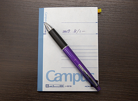 山本教授の思索の相棒は、多機能ボールペンと小さめのノート。ジャケットのポケットに入るサイズであることが必須条件だ。アイデアが浮かんだ時に即座にメモでき、ビジュアル的に分かりやすく整理できるこの組み合わせの「手軽さと万能であること」が魅力だという。