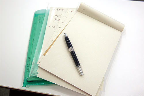 企画書の作成や原稿執筆といった作業はノートと万年筆のほうが生産性が高いという山口社長。成田空港で偶然見つけた万年筆とインクが染み込みやすい紙質のノートを活用している。「抽象的な発想をアウトプットするには紙が一番」とのことだ。