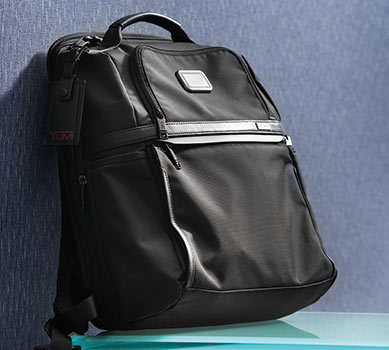 仕事鞄は「TUMI(トゥミ)」の背負えるタイプを選んだ。リュックは若者のイメージが強いが、「年配者こそ腰を痛めないためにリュックにすべき」と話す。健康維持とフットワークよく仕事ができる点が気に入っている。
