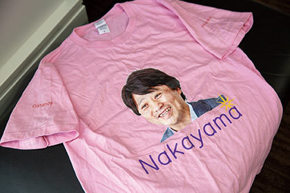 53歳の誕生日を迎えた昨年6月、社員が贈ってくれたオリジナルのTシャツ。手作り感にあふれているところに社員との絆を感じているという。同社イベントで着用することもあるほどのお気に入りの一品だ。