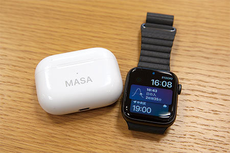 遠隔会議が多くなったアンダーコロナの業務ではワイヤレスイヤホンが必須となり、アップルの「AirPods Pro」を愛用中だ。また、iPhoneと合わせて「Apple Watch」も常に身につけている。睡眠計として使い、体調管理にも万全を期す。
