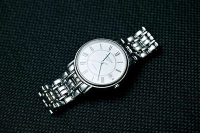8年ほど前にドイツへ出張した際、同僚と一緒に入った現地の時計店で「ほぼ衝動買いした」というロンジンの機械式時計。日付と時刻が分かるシンプルなデザインのほか、薄いところがお気に入りのポイントだ。