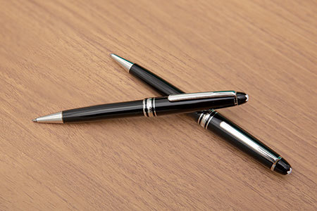 いつも持ち歩くシステム手帳に、モンブランのボールペンとシャープペンシルを挿している。特にシャープペンシルを愛用。消しゴムで消すことはあまりないが、手帳にたくさんの情報を書き込もうとすると、細字で書けるシャープペンシルのほうが好都合という。