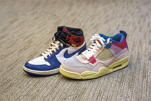 無類のスニーカー好きで、収集歴は学生時代から。ロサンゼルスのセレクトショップである「UNION」とナイキがコラボした「エアジョーダン1」と「エアジョーダン4」が最近のお気に入りだ。