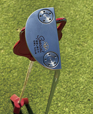 今年、還暦を機に一新したスコッティ・キャメロンのパター。購入の決め手は、ショップで「これはいいなと一目惚れ」したから。兄の影響で始めたゴルフ歴は34年。新しいパターについては「パットが上達したかどうかはさておき、構えた時の満足感がたまらない」と語る。