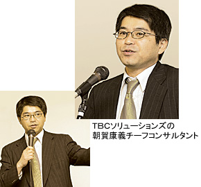 BCN(社長・奥田喜久男)は2月18日、東京・四谷の主婦会館プラザエフで「第4回BCNフォーラム」を開催した。昨年11月に続き今回も2つのセッションで構成し、第1部では「PマークかISMSか」をテーマに、個人情報保護法の全面施行を控えプライバシーバーク(Pマーク)とISMSの認証取得に関しTBCソリューションズの朝賀康義・チーフコンサルタントに、第2部では「中国IT最新事情とソフト開発の現状」をテーマに、米IBMと中国レノボグループの戦略についてキング・テックの王遠耀・代表取締役社長にご講演頂いた。第1部の講演要旨を今週、第2部の講演要旨を来週の2回に分けてレポートする。(田澤理恵●取材/文)