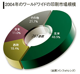 市場の現状については、EFIのガイ・ゲットCEOが、「デジタル印刷のマーケットとしては、個人や家庭で利用するパーソナル環境、オフィスなどで複数の人間が共有するワークグループ環境、印刷業者や社内の出力センターなど専任スタッフを置いているプロダクション環境に分けて捉えることができるが、市場規模が圧倒的に大きいのはプロダクション環境だ。世界規模でA4換算の印刷枚数を推定すると2004年で761億枚の規模になり、88%はプロダクション環境で印刷されている。国別に見ると、米国が49%、西ヨーロッパが18%、日本が11%を占める」と総括した。