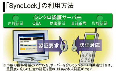 法人向けサービスとしては、マルチ認証システム基盤の上に業務用アプリケーションプラットフォームと管理システムを搭載した「SyncLock Enterprise(シンクロック・エンタープライズ)」と、ASP型で導入できる簡易型の「同Professional(プロフェッショナル)」を4月から提供する。