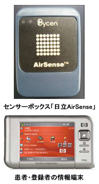 運動指導を受ける患者が「日立AirSense」を腰に装着すると、行動をもとに計測されたデータが無線通信によってPND(Personal Navigation Device)やPDAに転送され、患者は自分の行動パターン、運動量やその速度を逐次、PNDやPDAで確認することができる。PNDやPDAに蓄積されたデータは、無線LANシステムによって自動的にバイセンやサービス提供者のデータセンターにも転送。3軸加速度データを解析し計算した運動量や消費量のデータをもとに、医師や保健師、管理栄養士は、糖尿病患者や糖尿病予備患者への保健指導、食事や運動指導を行うことができる。