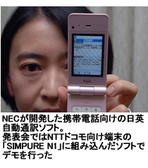 NEC、ケータイだけで日本語-英語を瞬時に自動通訳するソフトを開発