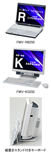 税別価格は、Windows Vista Businessを搭載した場合の最小構成で、「FMV-R8250」が24万3000円、「FMV-A8255」が14万8000円、「FMV-K5250」の15型液晶搭載モデルが17万5000円、17型液晶搭載モデルが18万2000円、19型ワイド液晶搭載モデルが20万9000円。OSを標準のWindows VistaからWindows XPにダウングレードする「Windows Vista Business & ダウングレードサービス」モデルも用意する。