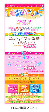 アクセスは、メリューリストからメールコンテンツを選択。その後アレンジメール、イラスト・アート・フォトを選び、「I Love 歌詞アレメ♪」にアクセスする。月額料金294円で15曲利用できる。16曲以上利用したい場合は1曲につき21円支払う。同サイトは、すでにNTTドコモのiモードおよびKDDIのau公式サイトとしてスタートしている。