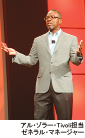 ソフトウェアグループのアル・ゾラー・Tivoli担当ゼネラル・マネージャーは、「(設備を含め)企業が活用する製品すべての管理が必要となる」と強調。ソフトウェアグループのシニア・バイスプレジデントでグループエグゼクティブを務めるスティーブ・ミルズ氏は、「インフラ管理は、何もITに限ったことではない。しかし、ファシリティや通信インフラをも管理するとなれば、莫大なコストがかかる。そういった点では、当社のソフトウェアを導入することが最適だ」と自信をみせた。また、こうした幅広い範囲をカバーした管理が省電力の徹底など“グリーン”化にもつながるとしている。(講演初日の米国時間5月19日記。詳細は6月2日号以降に順次掲載)