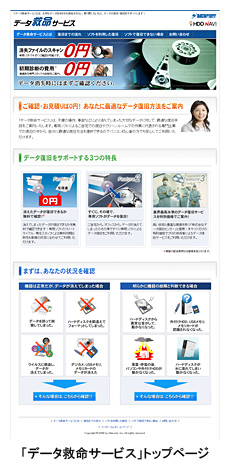 「データ救命サービス」では、まず専用ソフトのフリートライアル版をダウンロードして、データ復旧の可能性を診断。その後、専用ソフトのライセンス(使用権)を購入してデータを復旧するというしくみ。ライセンス料は8190円で、内蔵・外付けHDDのほか、各種メモリカードやUSBメモリ、フロッピーディスク、MOなどのデータ復旧に対応する。専用ソフトでデータ復旧できなかった場合は、サイトから専門企業に無料相談が行えるほか、さらに高度なデータ復旧サービスを特別価格で利用することもできる。特別価格は、専用ソフトでデータ復旧を試みても復旧できなかった場合に、データ復旧サービスの料金から1万3440円を割り引いた金額を適用するため、ユーザーは専用ソフトのライセンス料を無駄にすることがない。専用ソフトは、その後も継続して利用することが可能。